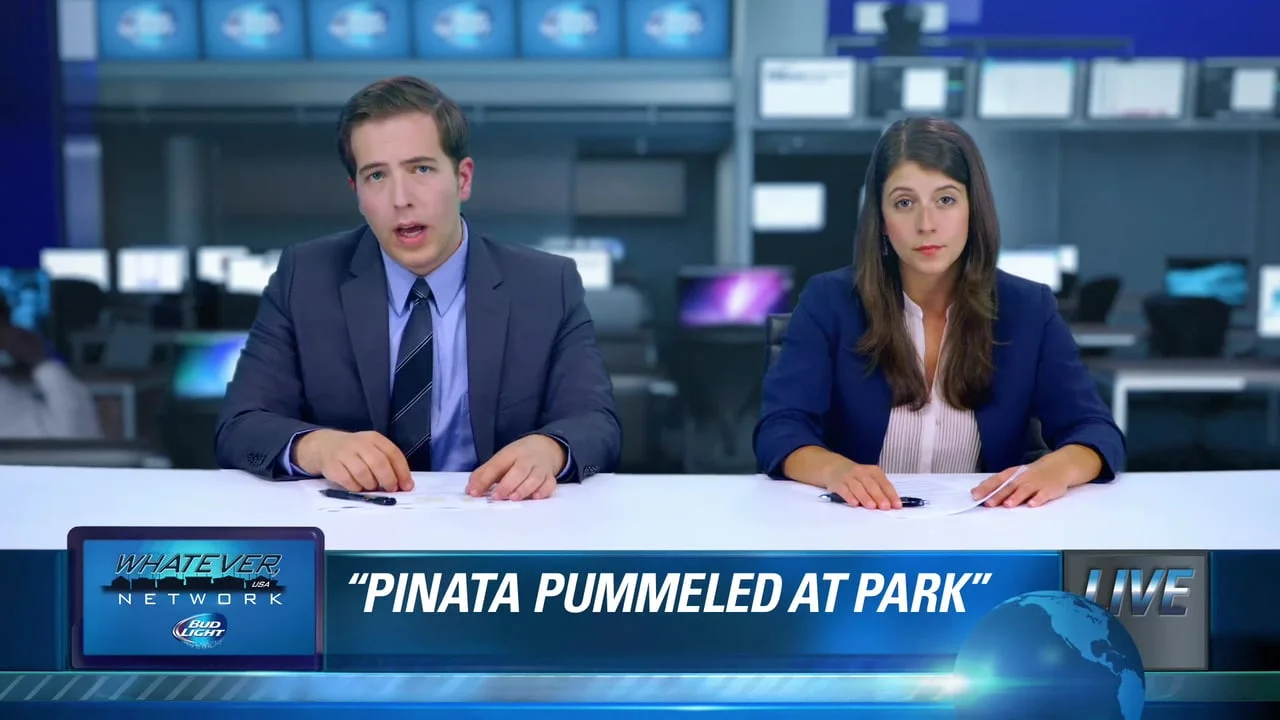 Our friends at Bud Light asked us to bring to life their "Whatever USA" town/event. They wanted to make their beer paradise town feel as real as possible, so we created a series of 30+ news broadcasts in less than 5 weeks. Sheesh.
